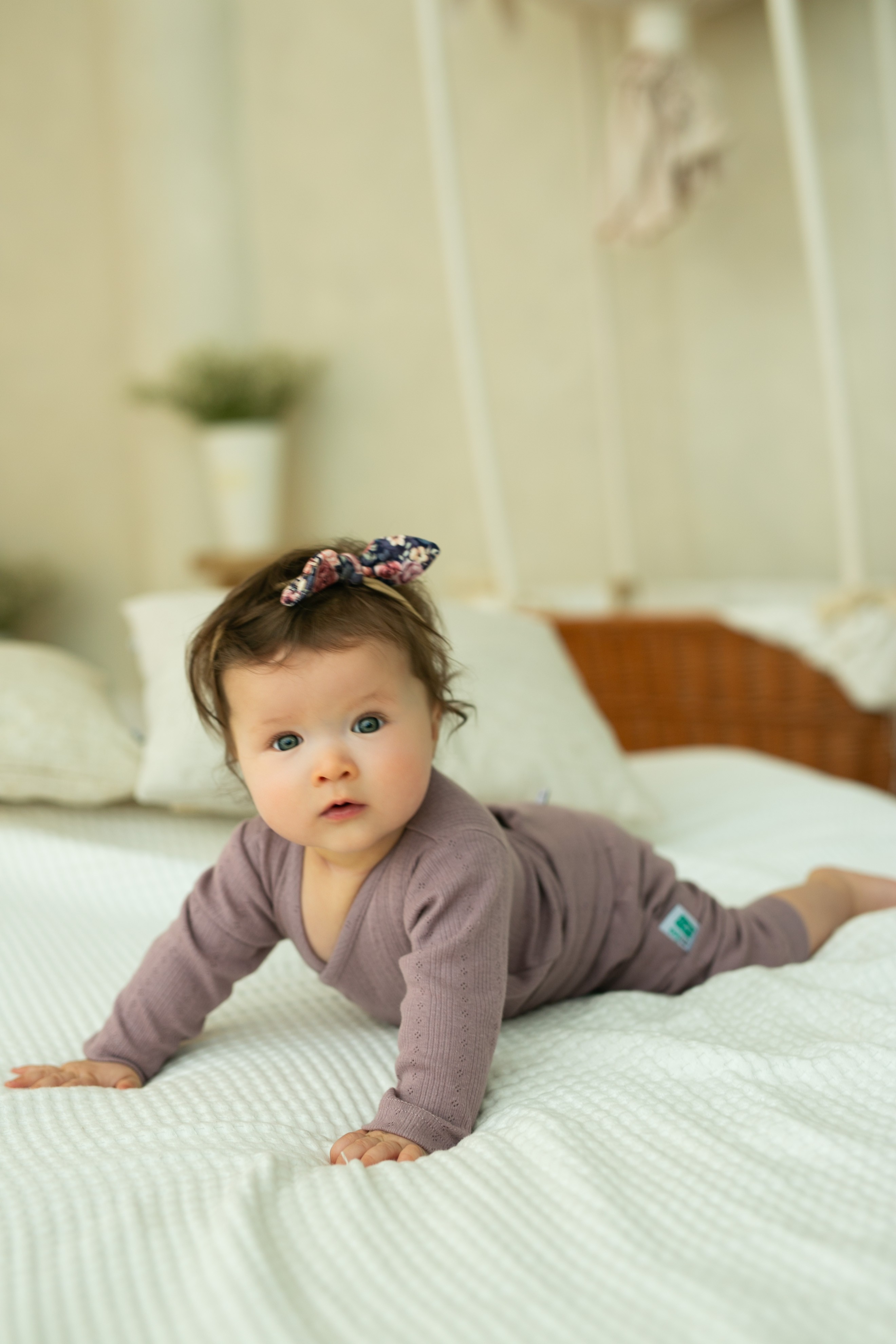 Body niemowlęce z 100% bawełny z ażurowym wzorem - wrzosowe