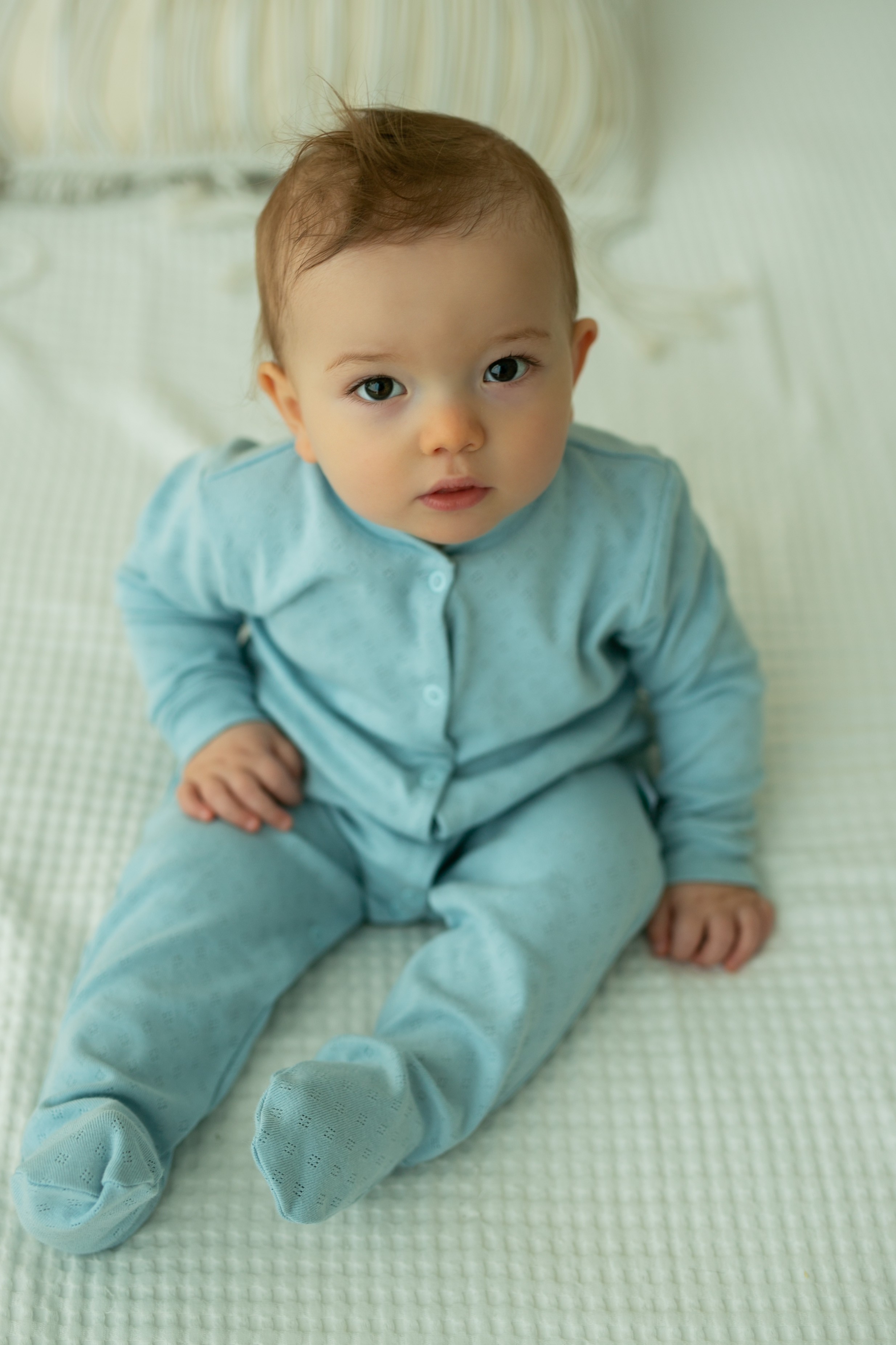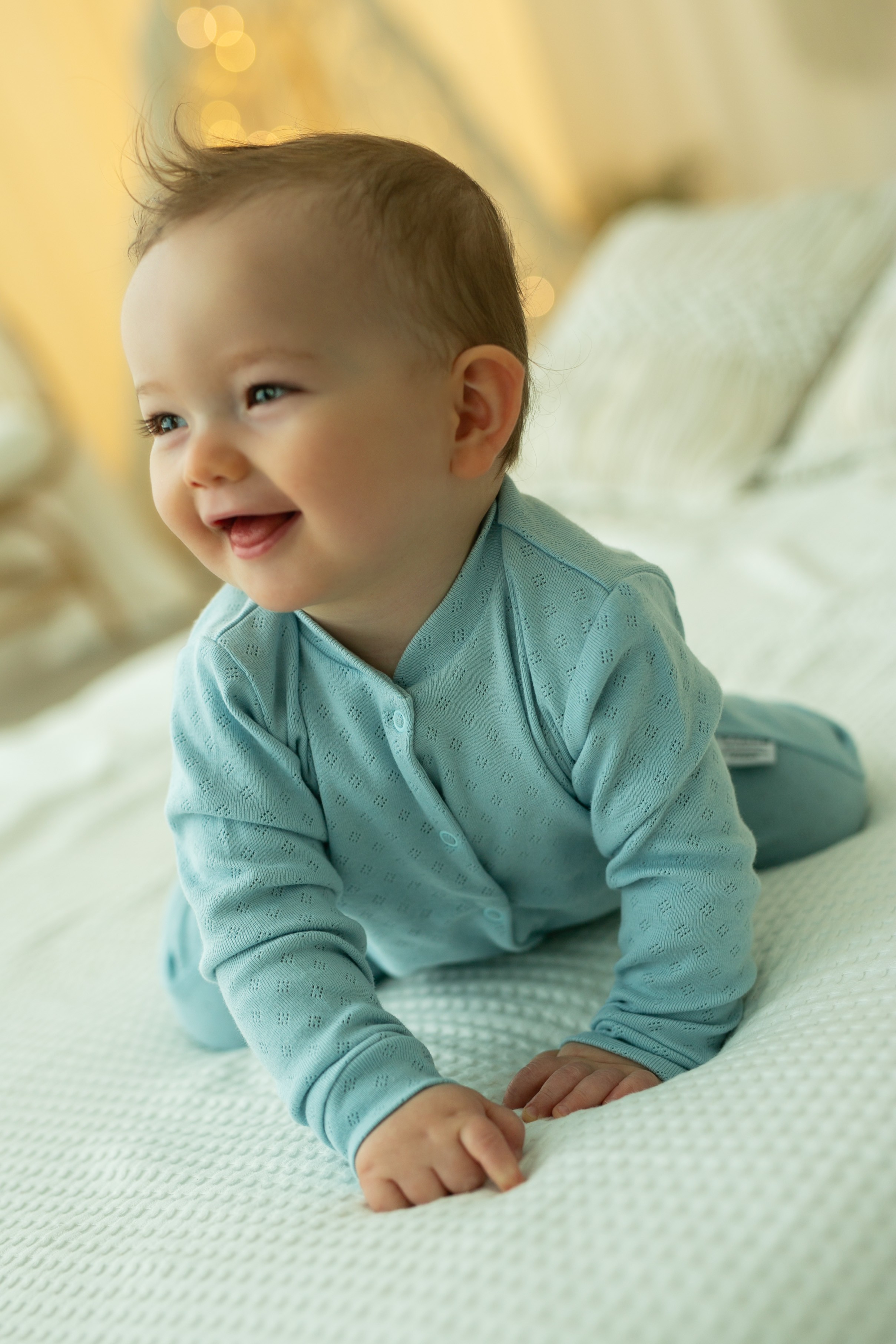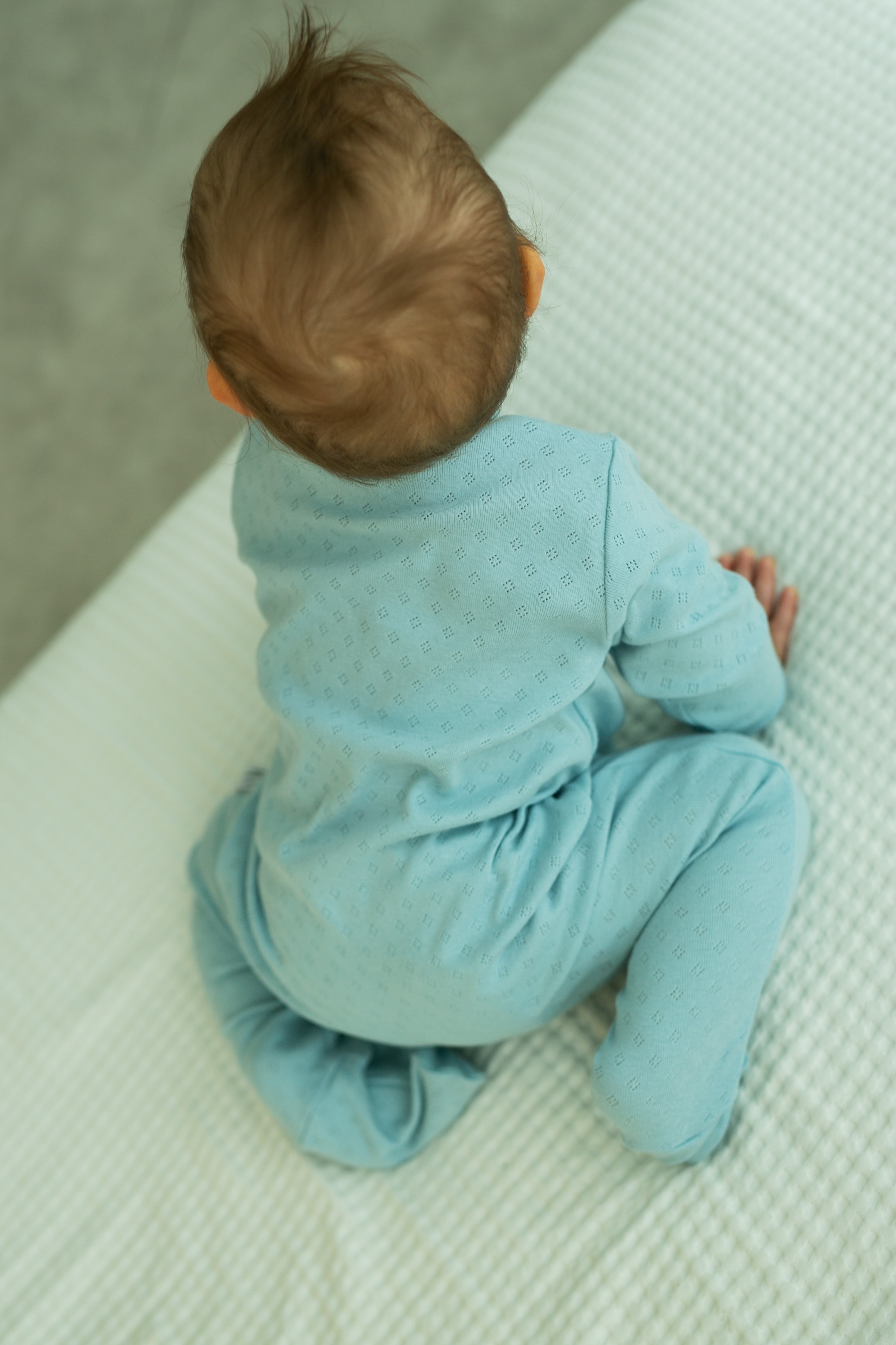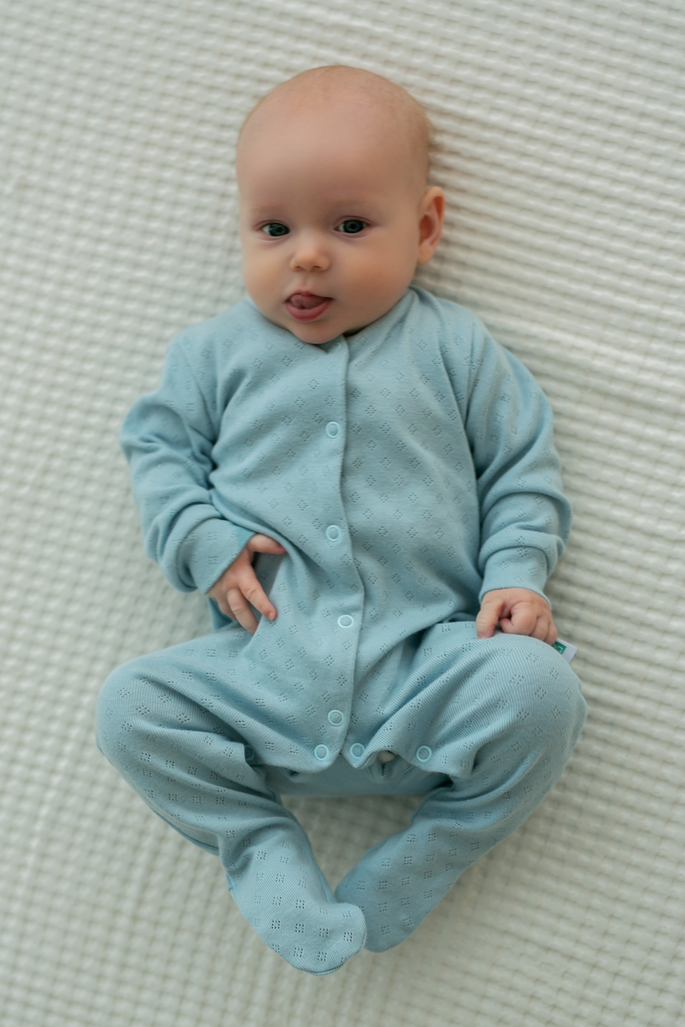 Pajac niemowlęcy z 100% bawełny z ażurowym wzorem - niebieski