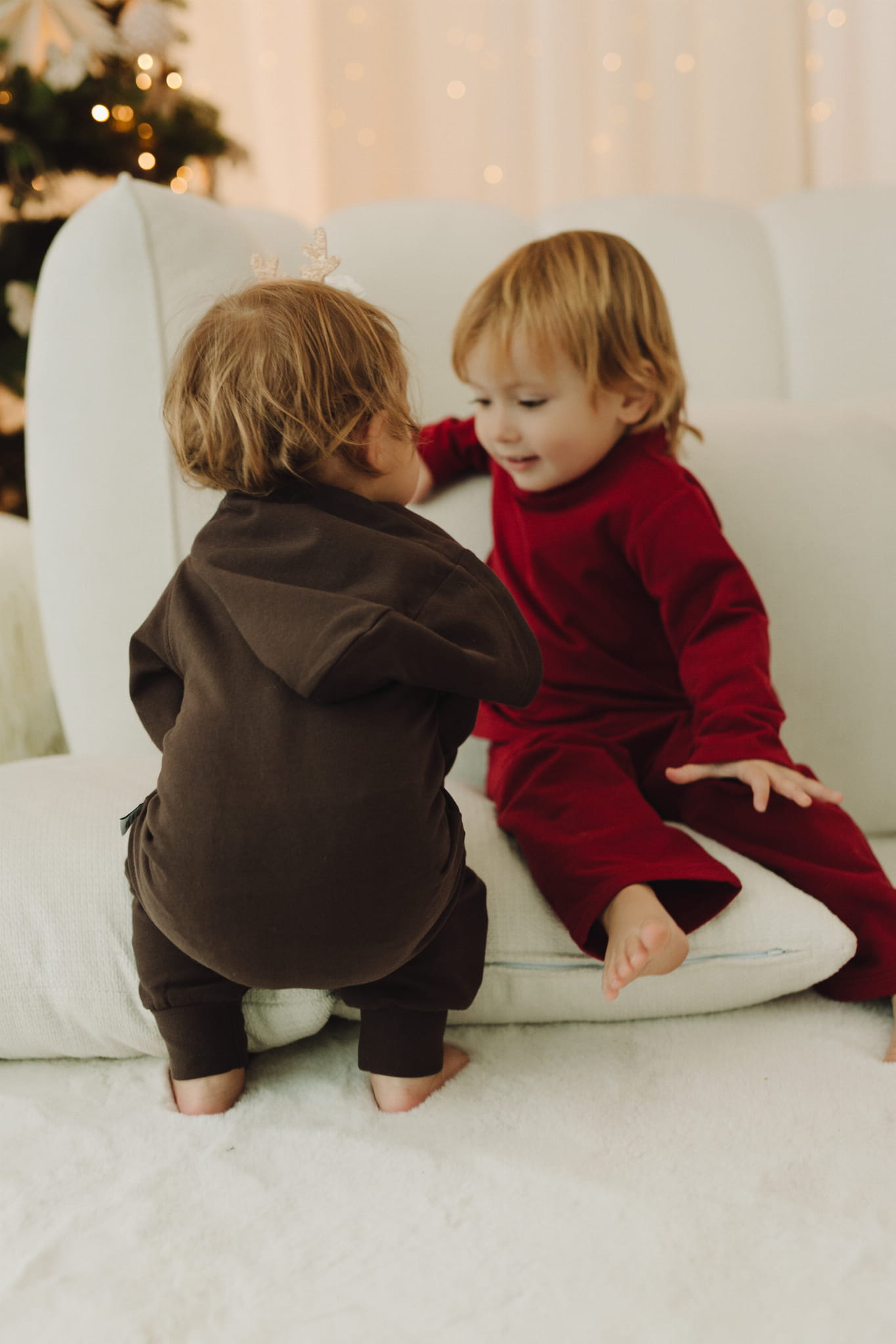Stonowane, piękne kolory idealnie wpisują się w klimat nadchodzących świąt, a jednocześnie pozostają na tyle uniwersalne, że pajacyk świetnie sprawdzi się również w codziennych stylizacjach – do domu, na spacer czy rodzinne wyjścia.