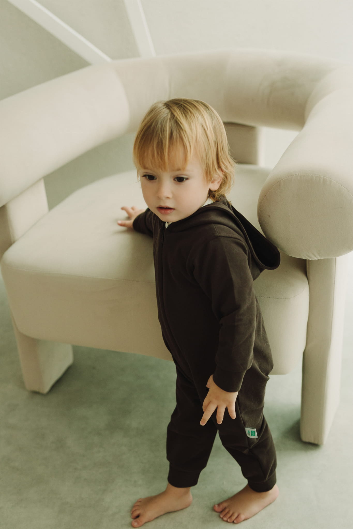Praktyczny zamek na całej długości ułatwia szybkie przebieranie, a duży, miękki kaptur chroni przed chłodem i dodaje stylowego charakteru. Starannie dopracowany, nowoczesny krój zapewnia dziecku pełną swobodę ruchów, a przemyślana forma sprawia, że pajacyk wygląda wyjątkowo modnie.