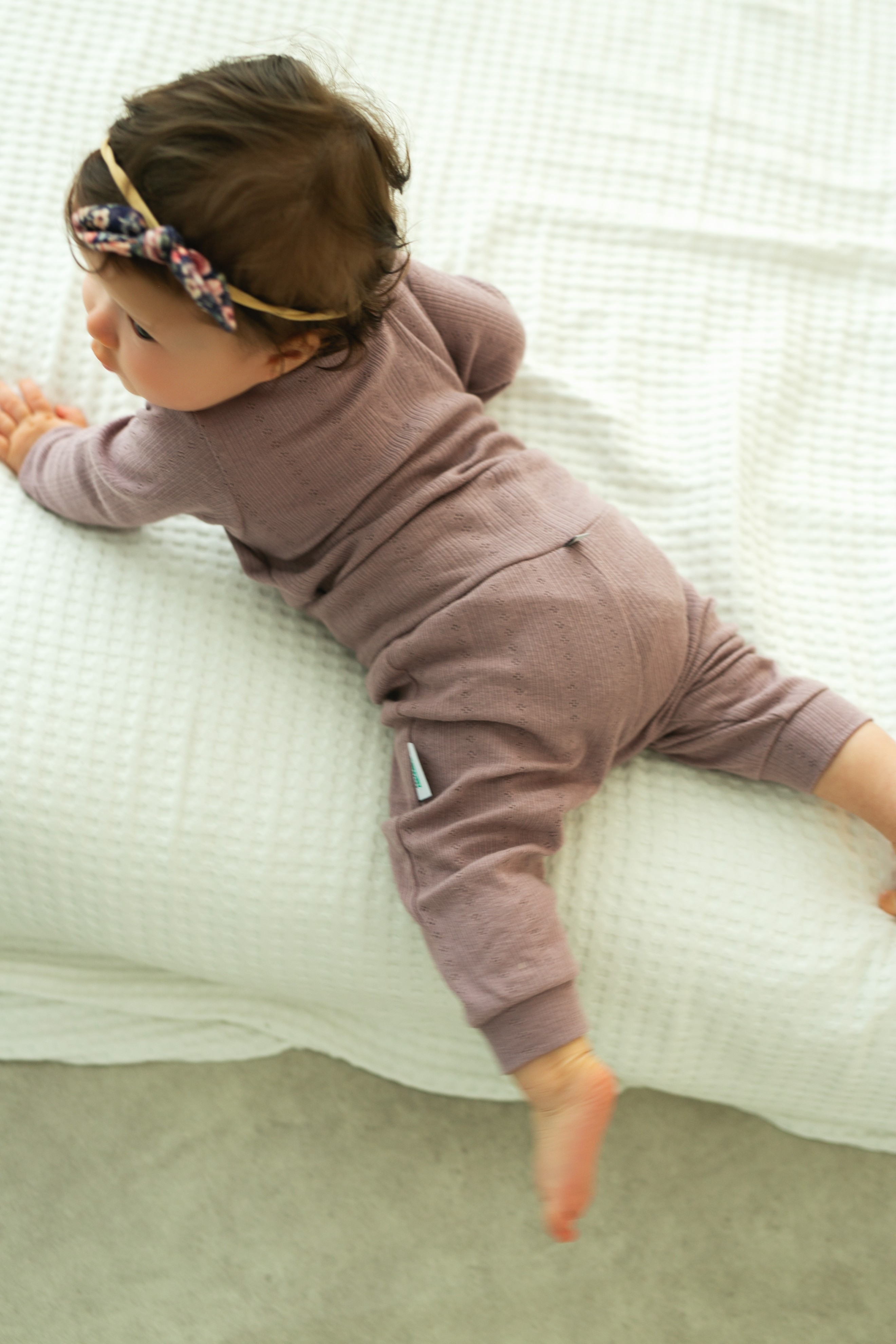 Materiał posiada certyfikat Oeko-Tex Standard 100 klasa I, co oznacza, że jest w pełni bezpieczny dla wrażliwej skóry niemowląt już od pierwszych dni życia.